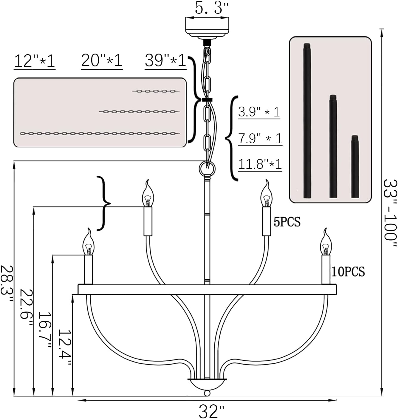 Featuring adjustable height options and customizable chain lengths, this chandelier allows you to fit it seamlessly into your space. Itâs ideal for creating a warm and inviting atmosphere in your dining room, kitchen, or entryway. With a dimmable feature and compatibility with E12 bulbs, you can easily adjust the brightness to suit your mood or lighting needs. Whether you're installing it above a dining table or using it as a decorative element in a hallway, this fixture is crafted to enhance your homeâs overall design.